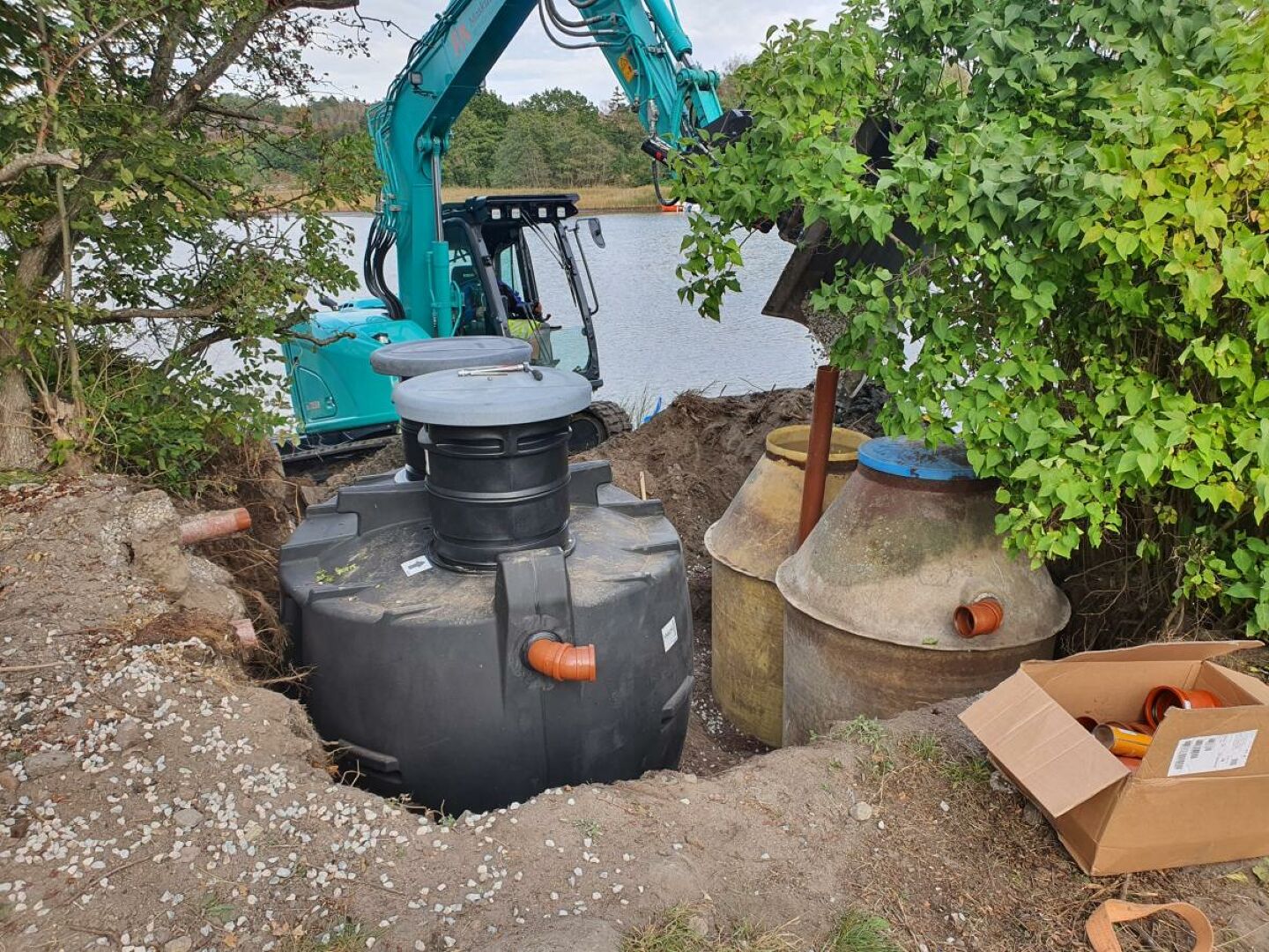 Vi utfører alt fra små vann- og avløpsgrøfter til hus eller hytte eller store komplette VA grøfter både kommunalt og privat. Vi etablerer renseanlegg og formidler boring av vann- og energibrønner.