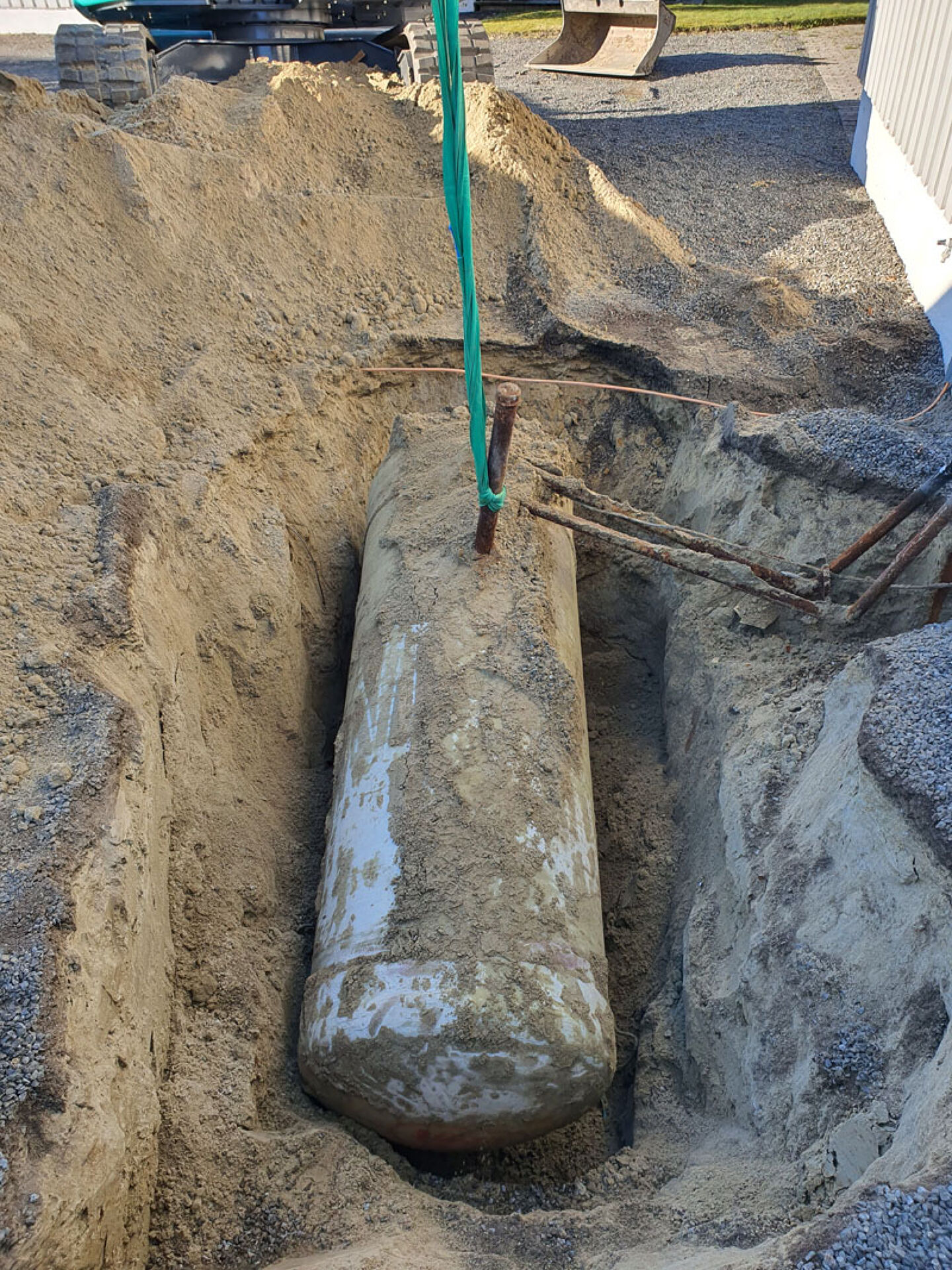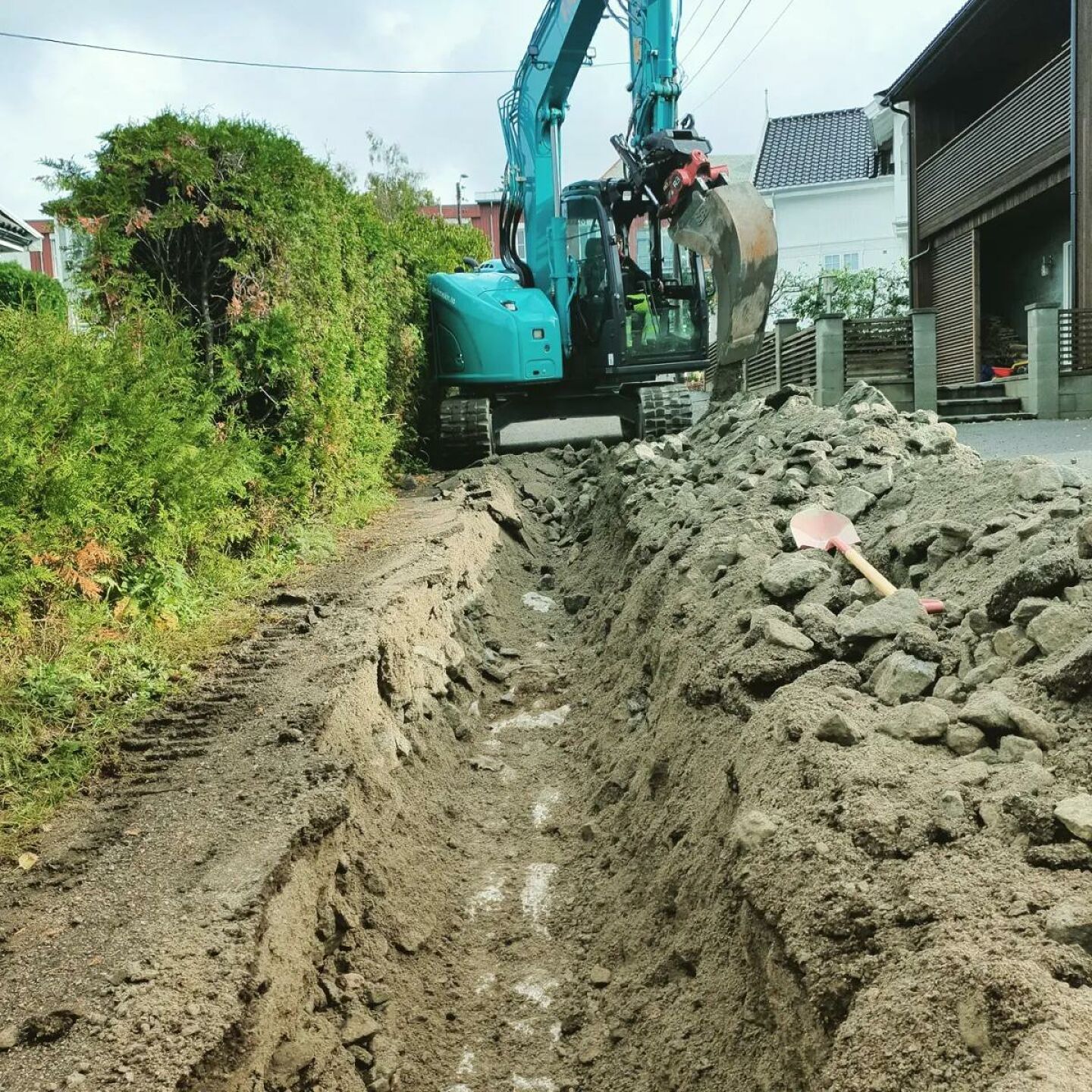 Vi har medarbeidere med ADK-bevis, og kan dermed ta på oss oppdrag med med grøftegraving og legging av vann og avløp.